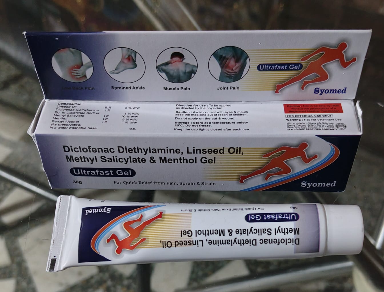 1.ULTRAFAST GELDiclofenac Diethylamine, Linsed Oil, Methyl Salicylate & Menthol Gel 30 Gm1*1