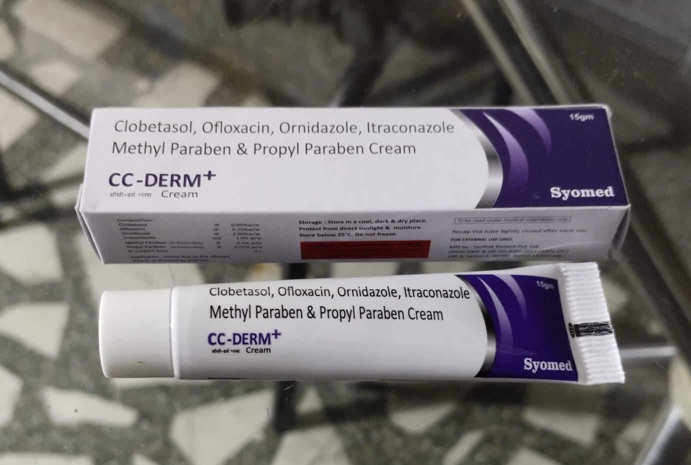 2.CC-DERM+Clobetasol, Ofloxacin, Ornidazole, Intraconazole Methyl Paraben & Propy Paraben Cream 15 Gm1*1