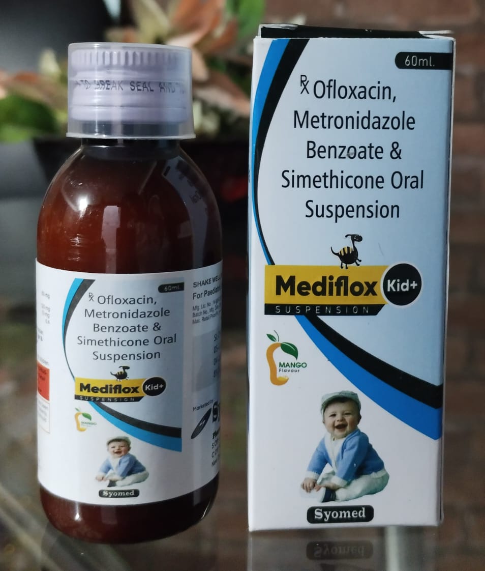 3.MEDIFLOX-KID+Ofloxacin, Metronidazole Benzoate & Simethicone Oral Suspenssion 60 Ml 1*1